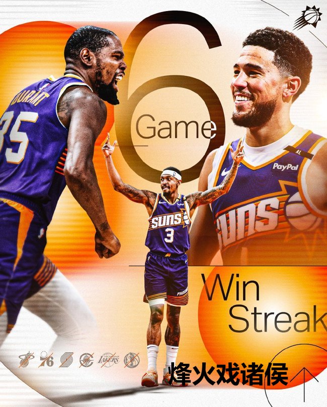 太阳豪取6连胜,亚博体育app当今以7胜1负升至西部第一。